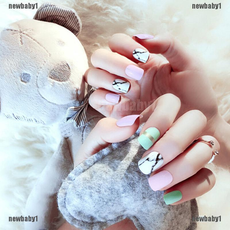 24pcs Set Diy Artificial Short Full Cover False Fake Matte Nails Art Tip
